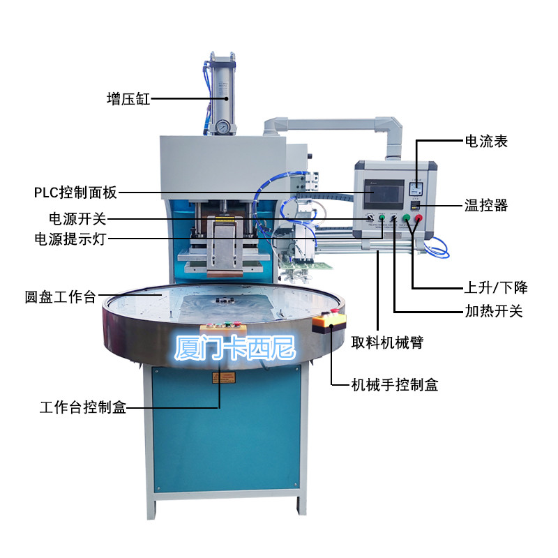 应用范围: 适用于塑料、塑胶如PET,PETG,GAG,PVC等双面吸塑包装,吸塑+卡纸包装柔软线胶盒制作,牙刷包装,公仔、皮革表带等需熔接而且又要裁断的产品;具有同时熔接及裁断功能的高周波熔断机也可以用在EVA布类皮革、真皮、TPU、PU、热水袋、表带、吊带保暖袋等需要熔接又要同步熔断的产品。